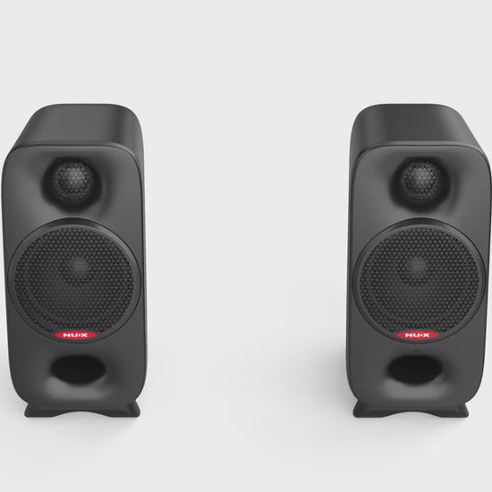 Kompakt størrelse. Kraftig lyd – Profesjonelle toveis monitorhøyttalere med 90W RMS bi-amp for balansert lyd – 3" neodym-basser og 3/4" silkediskanter for dyp bass og klare topper – Presist og detaljert lydbilde med bassrespons ned til 55 Hz – Kompakt og bærbar – maks lydtrykk på hele 107 dB – Innebygd DSP for nøyaktig og flatt frekvensspekter – Medfølgende AXON STUDIO-programvare og app for lydjustering – Justerbare magnetiske fotstøtter for optimal vinkling – Bluetooth for sanntids trådløs musikkavspilling – USB DAC for høyoppløst Hi-Fi-lyd – RCA-inngang for tilkobling av vinylspillere – Leveres med 4-pin stereokabel, strømforsyning og NUX bag-etui! NUX AXON 3 er en ultraportabel studioreferansehøyttaler med imponerende klarhet, presisjon og kraft. Perfekt for musikkproduksjon, miksing, streaming eller videoredigering – både hjemme og på farten. 90W bi-amp med 3" basselementer Fire klasse-D forsterkere driver høyttalerne individuelt for maksimal effektivitet og ren, detaljert lyd. To 3" neodym-woofere gir solid bass ned til 55Hz, mens 3/4" silkediskanter sørger for klare topper. Smart lydjustering via app Innebygd DSP og app-basert EQ gir deg full kontroll over lydbildet. Allsidige tilkoblinger AXON 3 har USB DAC for høyoppløst lyd, Bluetooth for trådløs bruk, RCA og 1/4" jack for studio og vinylspillere, og AUX-inngang for mobil og andre enheter. Magnetiske fotputer og stativfeste Med justerbare magnetiske fotstøtter og 3/8" stativfeste får du optimal plassering – på pulten eller på stativ. Proff lyd. Uansett hvor du er AXON 3 leverer studio-kvalitet i et kompakt og lett design, komplett med bæreveske. Ideell for musikere, produsenter, innholdsskapere og alle som krever god lyd – overalt. Toveis bi-amp referansemonitor (klasse D) Frekvensrespons: 55 Hz – 20 kHz (–3 dB) 3" neodym-woofer og 3/4" silkediskant Maks lydtrykk: 107 dB Effekt: 90W totalt (2 × 45W) Innganger: Jack (2x), RCA (2x), AUX (1/8"), 4-pin speaker Bluetooth 5.0 og USB DAC (24-bit / 48 kHz) Innebygd DSP med EQ via app/software Kabinett: ABS med bassrefleksdesign Dimensjoner: 204.5 × 94 × 150 mm (én enhet) Vekt: 1,98 kg (par)